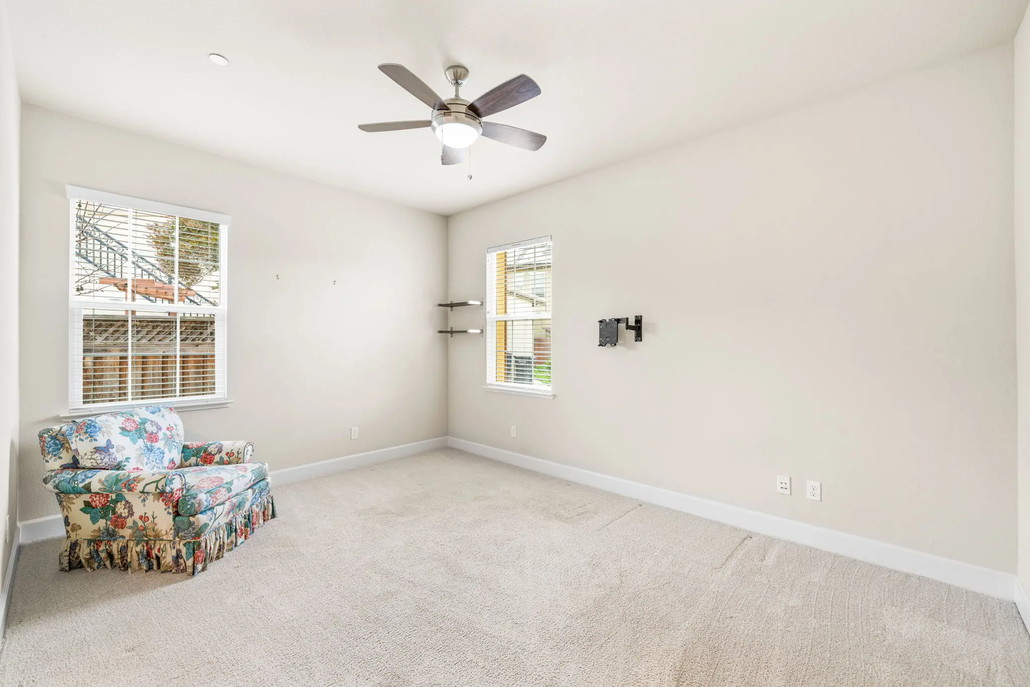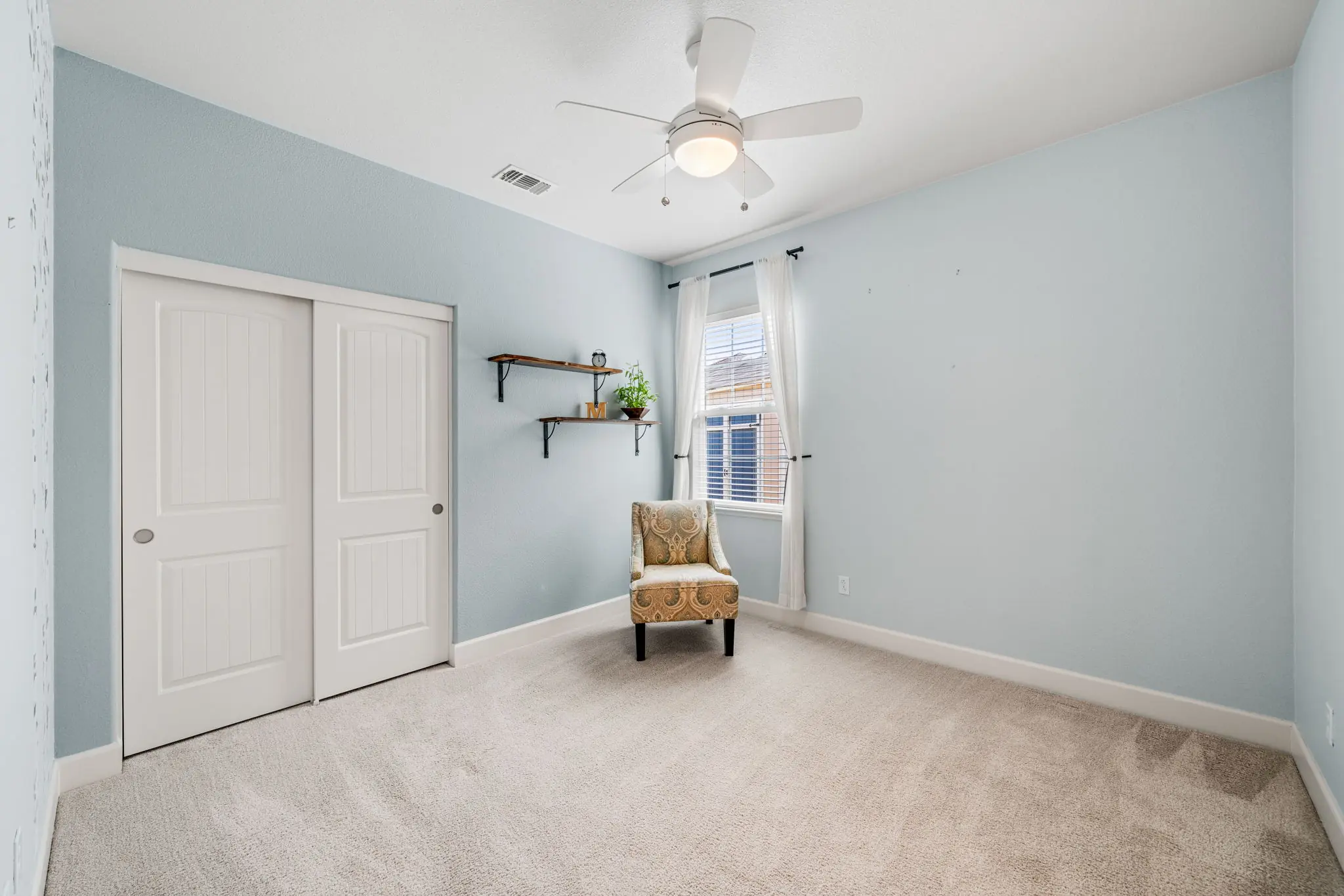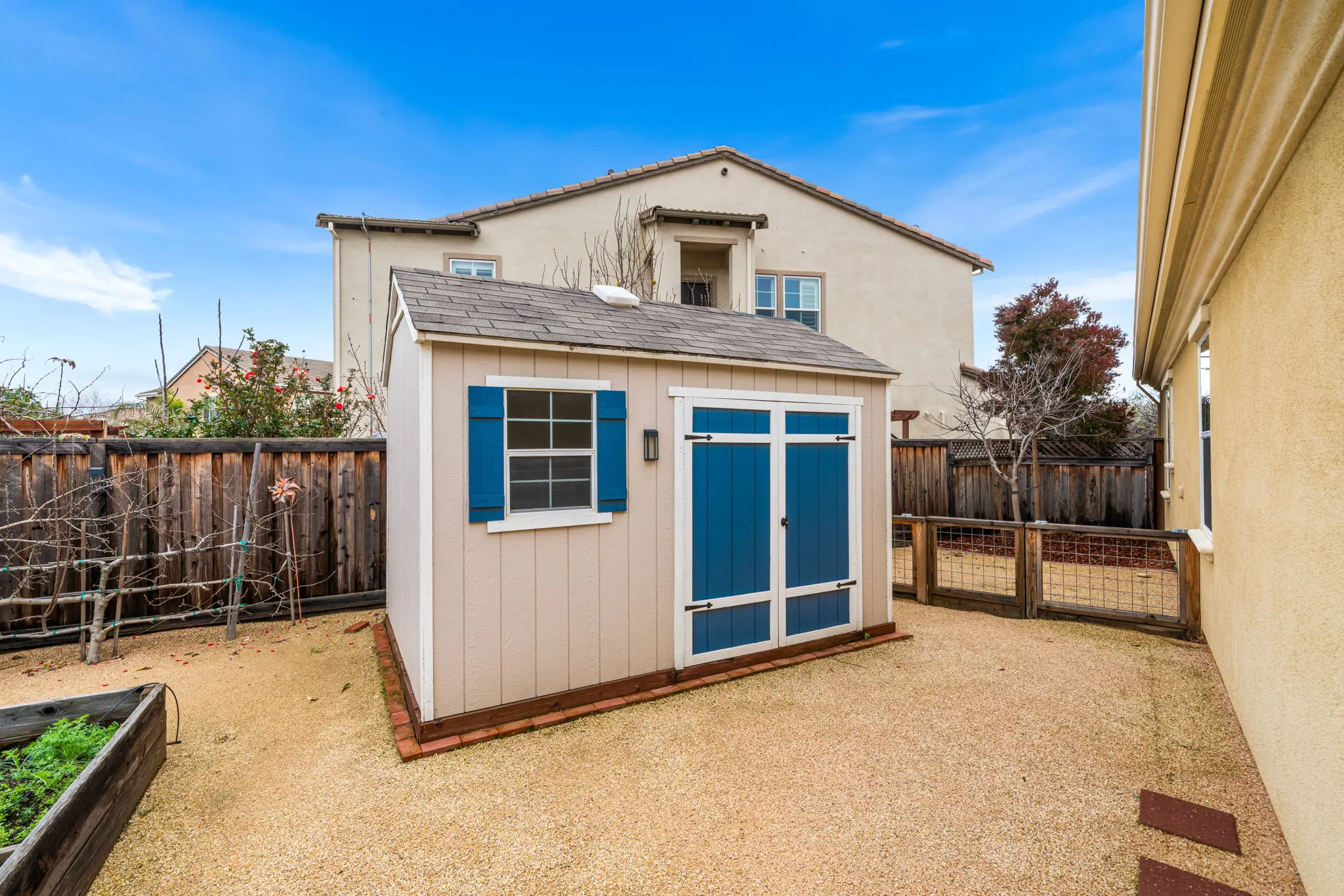 3 bedrooms with a flex room 552 North Miraloma Court. Experience modern luxury in this solar-powered, 2015-built Shea Umbria home, perfectly situated on a .21-acre 9,278sf cul-de-sac lot. The journey begins through a private street-entry door into an inner courtyard, a rare architectural touch for indoor-outdoor living. Inside, an open-concept great room with a fireplace flows into a spacious kitchen featuring double ovens and sleek faux-wood tile flooring. The versatile flex room includes custom industrial shelving, while the thoughtful floor plan features full bathroom connected second and third bedrooms. The primary bedroom suite offers a spa-like retreat with an oversized shower, soaking tub, and two walk-in closets. This home is packed with extras that make life better, including solar tubes for natural light, a home theater system, and a split garage layout (2-car plus a separate 1-car bay) with epoxy flooring, heavy duty garage storage and a Level 2 240V EV outlet. Relax in the enclosed California room before going out to the U-shaped backyard complete with a dog run, storage shed and raised garden beds. With no HOA, a tankless water heater, and a fire suppression system, this meticulously maintained property is truly Mountain House move-in ready.